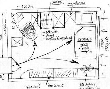 Обязательно определить предметы, под которые разрабатывается мебель, ( одежда, белье, посуда, книги и т.д.). Для крупных предметов надо записать габаритные размеры (гладильная доска, пылесос и т.д.).